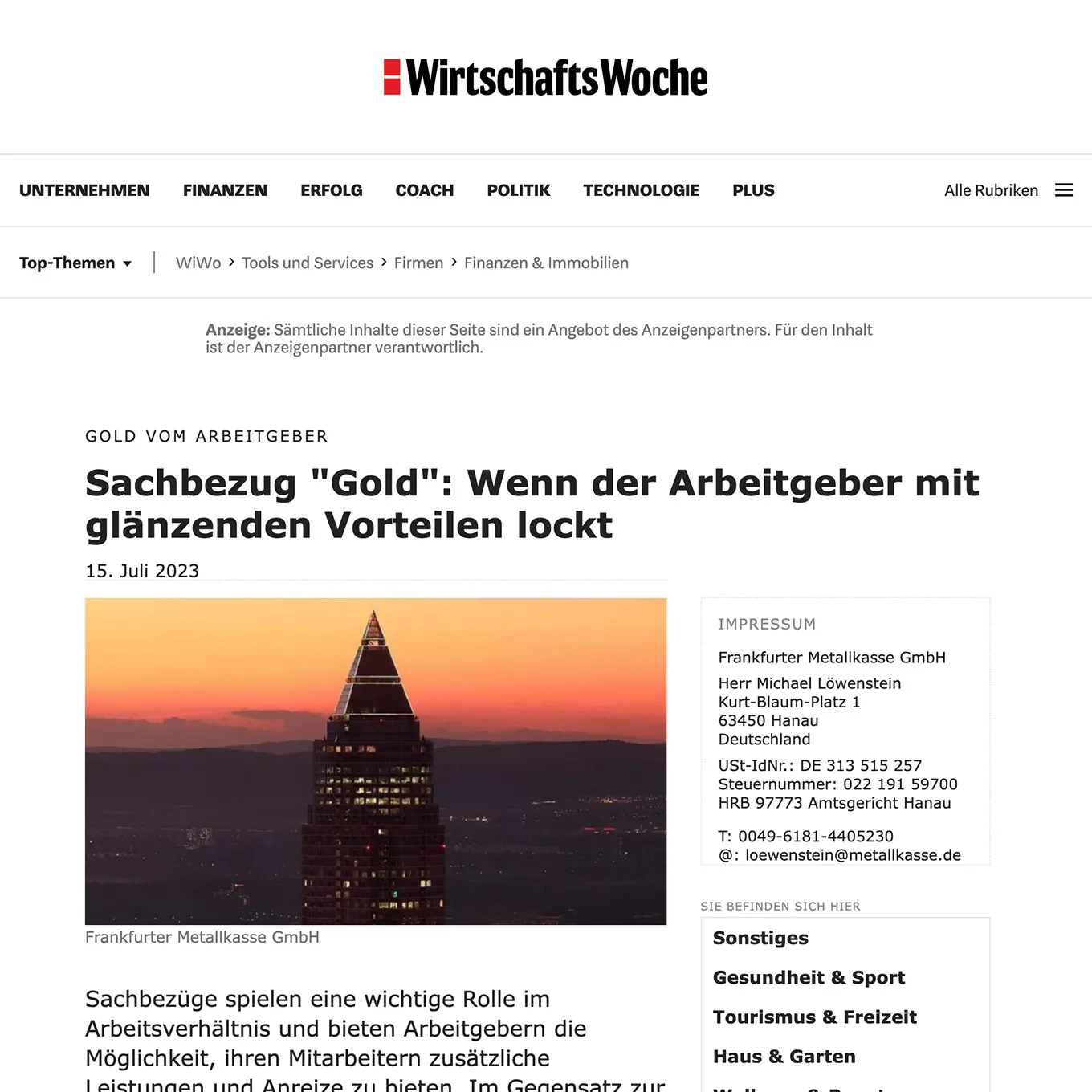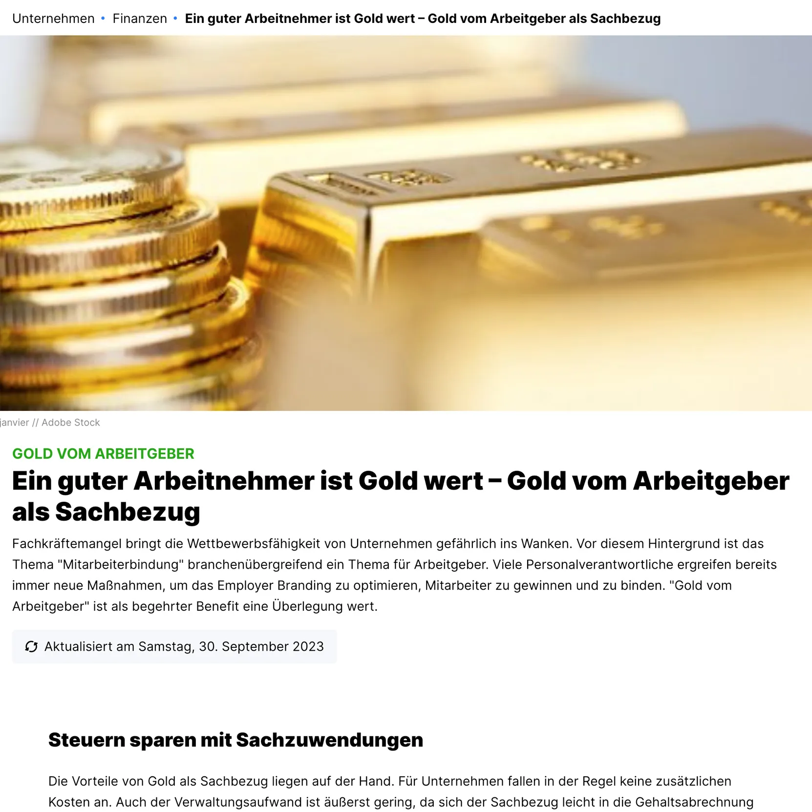 Gold als Gehaltsbestandteil („Sachbezug“)
